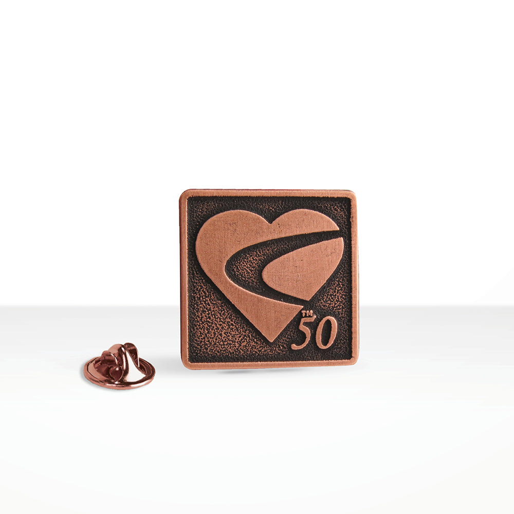 Showcase your logo or initiative with a 100% custom 2D shape, colour-fill enamel pin. Made in Canada. Up to 1". Responsibly made from recycled metals.