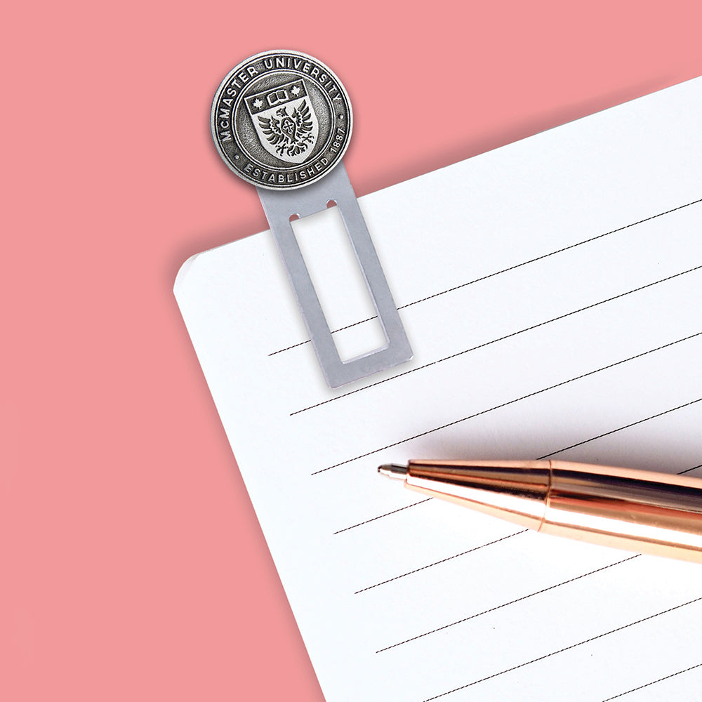 Something different for quickly finding your place in a book or journal or dayplanner, this metal bookmark with custom shape 2D emblem comes in a variety of finishes and can be up to 1" wide.